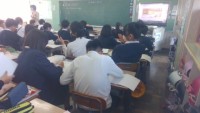 美原中学校から先生に来ていただき、中学校での生活について説明してもらいました。