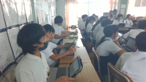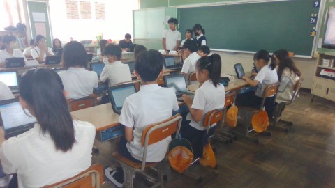 国語の学習の様子です。班ごとに考えた約束やきまりを,全体でまとめていました。