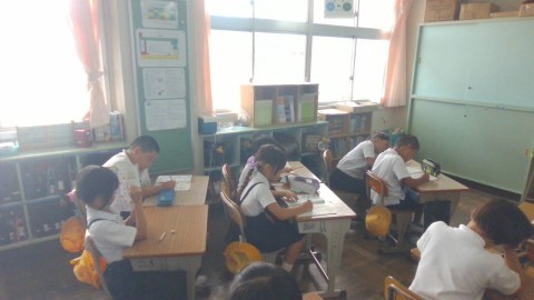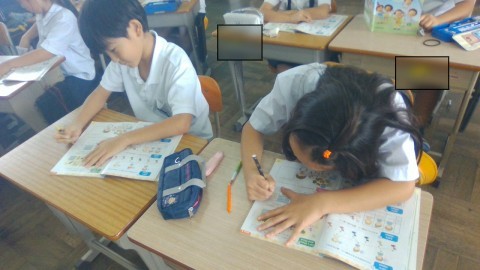 外国語の学習の様子です。「I like ~」「I don't like ~」を使って,自分が好きなものや嫌いなものを伝え合っていました。
