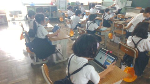 算数の学習の様子です。タブレットのドリルパークを使って練習問題に取り組んでいました。