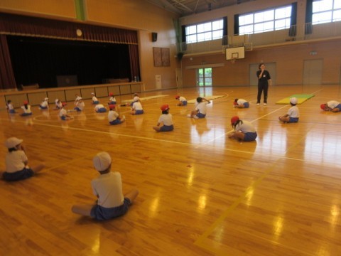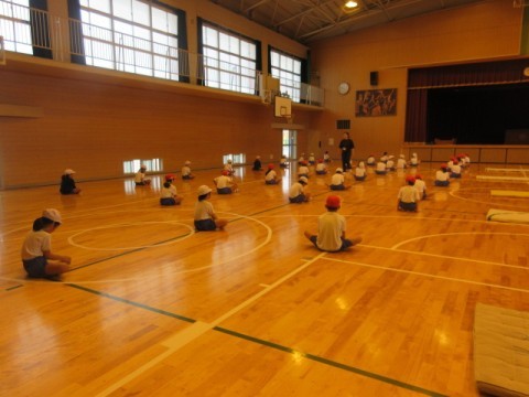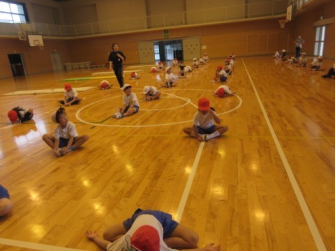 運動の前の柔軟体操にしっかりと取り組んでいました。