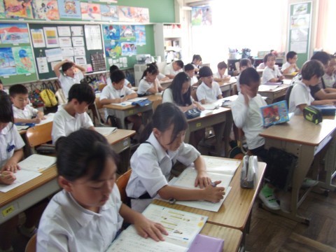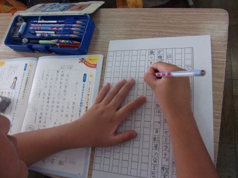 文字の大きさや配列に気をつけながら,鉛筆で丁寧に文字を書いていました。