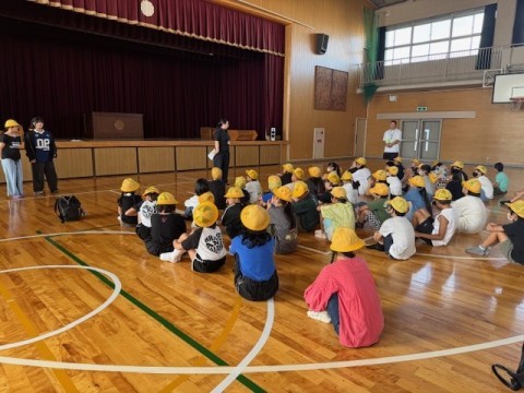 いよいよみんなが楽しみにしていた臨海学校です。出発式の様子です。