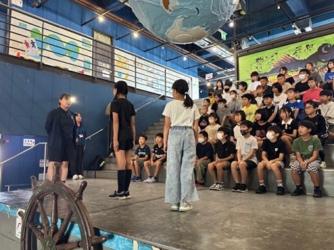 特に渋滞等なく,ほぼ予定通り大阪府立青少年海洋センターに着きました。入所式の様子です。