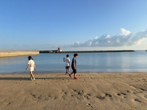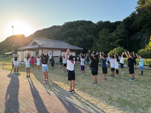 とても気持ちのいい朝です。2日目が始まりました。ときめきビーチに出て朝の集いを行い,砂浜で朝の散歩をしました。昨日一日大きな怪我や体調不良もなく,みんな元気に過ごしています。