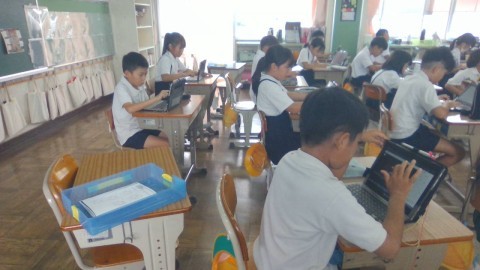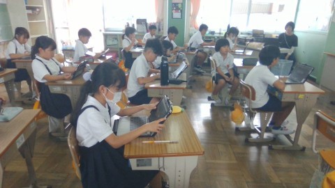 タブレットを使ってそれぞれの課題に取り組んでいます。