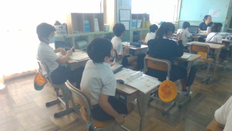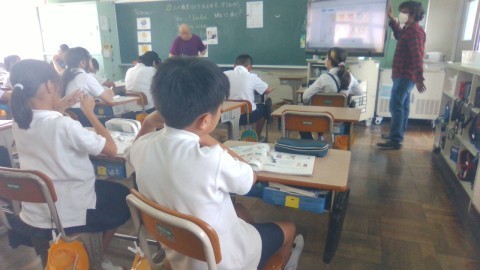 外国語の学習の様子です。外国語の担当の先生とネイティヴスピーカーの先生の二人で授業をしています。ネイティブスピーカー方の発する英語もしっかり聞き取っています。
