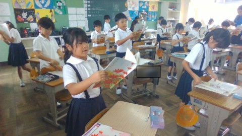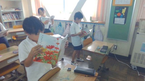 国語の学習の様子です。アーノルド・ローベルの『お手紙』の音読をしていました。