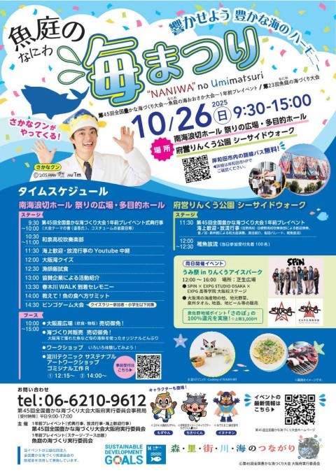 大阪府環境農林水産部水産課より「第45回全国豊かな海づくり大会~魚庭(なにわ)の海おおさか大会~1年前プレイベント/第23回魚庭の海づくり大会」開催案内のチラシが届いています。ご確認ください。