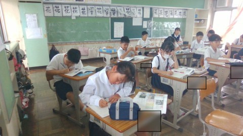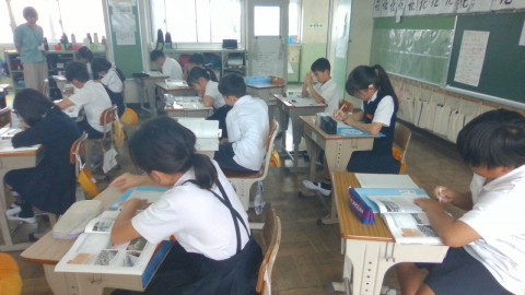 社会科の学習の様子です。大阪府でおきた自然災害について調べていました。