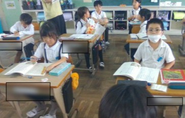 国語の学習の様子です。物語文『お手紙』の学習をしています。ペアの人と自分の考えを伝え合っていました。