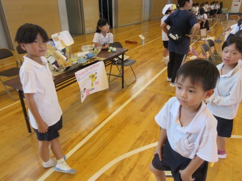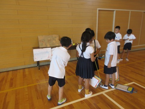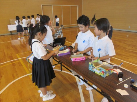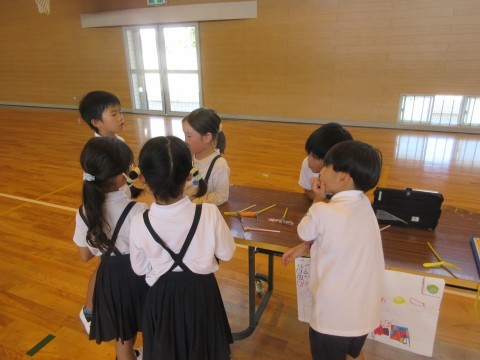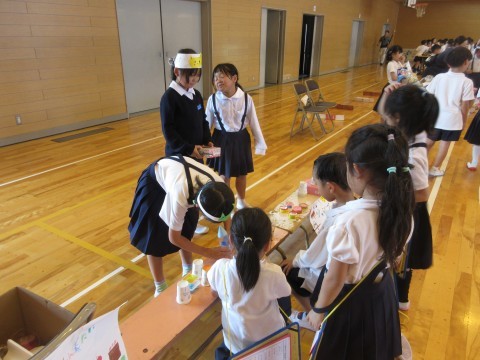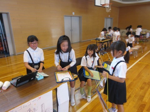 生活科の学習の様子です。2年生がつくった『おもちゃランド』に1年生を招待して,遊びました。2年生のみんなはこの前の日曜参観でお隣のクラスの友だちや保護者のみなさんがお客さんとして来てもらった時のときにうまくいったことや,うまくいかなかったことを生かして,遊んでもらっていました。