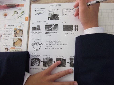 味噌汁のだしの取り方について学んでいました。