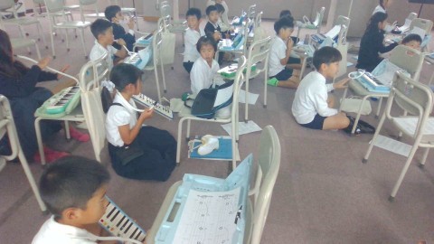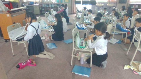音楽の学習の様子です。『きみをのせて』を鍵盤ハーモニカで演奏しています。