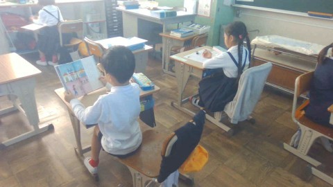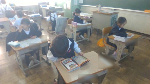 国語の学習の様子です。テストをしていました。テストが終わった人は静かに本を読んでいました。