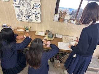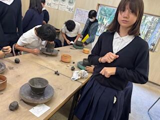 作品が出来上がった人は、名前と作品名を書いて、ろくろの下に挟んでおきます。