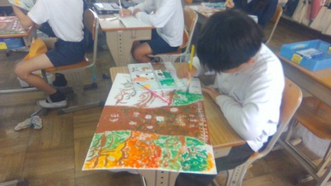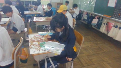 図工の学習の様子です。細かいところまでていねいに塗っています。
