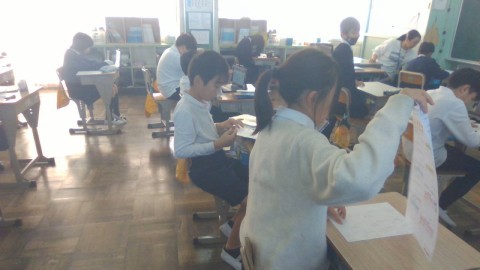 算数の学習の様子です。『平均』のテストに取り組んでいました。