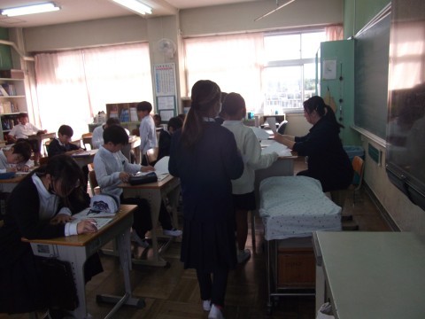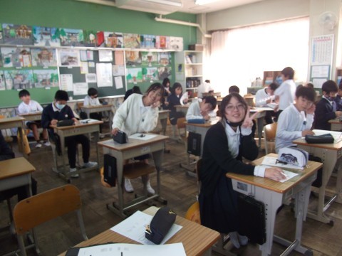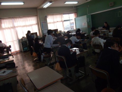 アンケートに取り組んだ後,体育カードを書いていました。