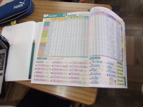 地図帳の人口と面積を見ながら,人口密度について計算をしていました。