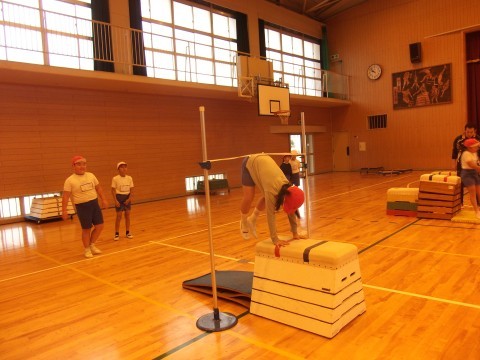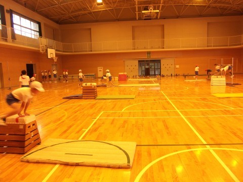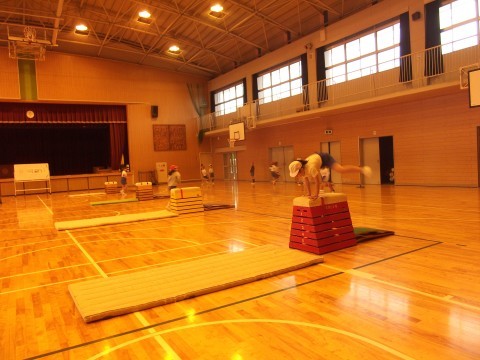 開脚とびの練習をしていました。