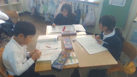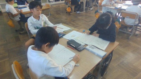 算数の学習の様子です。8の段のかけ算について学習しています。