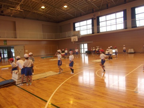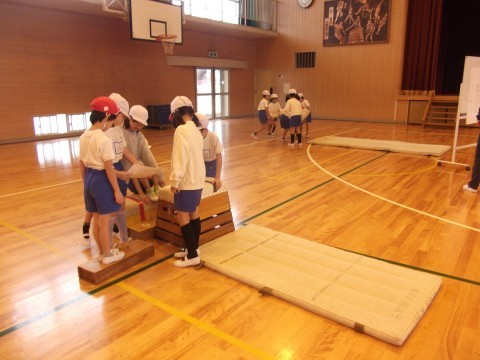 跳び箱とマットを使って,いろんな修行に取り組みます。