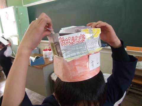 「ミリーのすてきな帽子」に出てくるようなすてきな帽子を各々で作っていました。