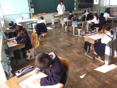 1組と同じく,冬休み前のまとめテストに取り組んでいました。