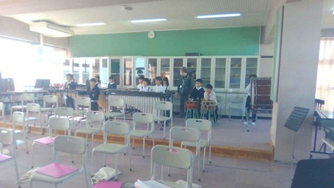 音楽の学習の様子です。「おむすびころりん」のお話に合わせて演奏をする練習をしていました。