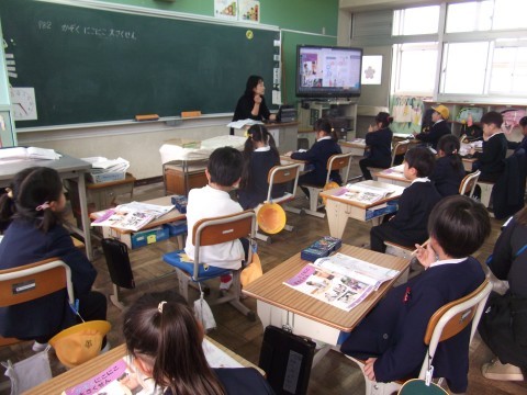 「かぞく にこにこ 大さくせん」で家族の人が普段どんなことをしているかについて話し合っていました。