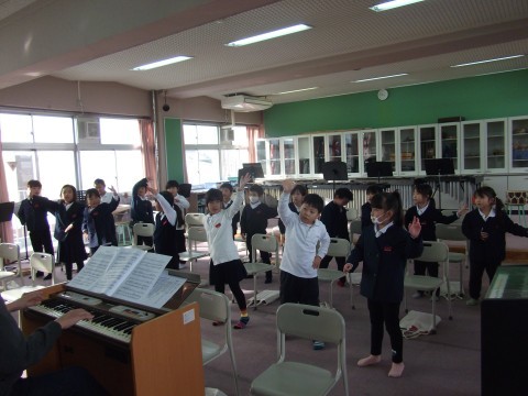 「赤鬼と青鬼のタンゴ」の曲に合わせて,歌を歌いながら踊っていました。
