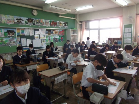 家庭科のテストに取り組んでいました。
