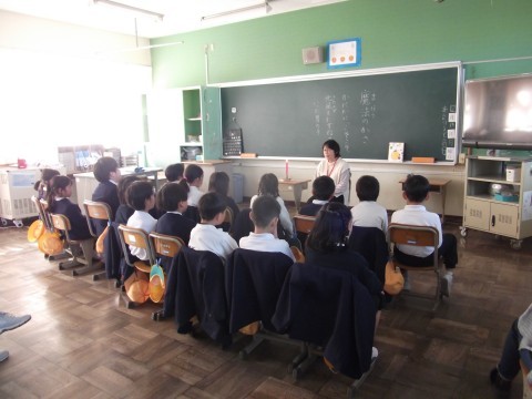 「魔法のかさ」「かにかに,こそこそ」「北風をたずねていった男の子」の3つのお話をしてもらいました。