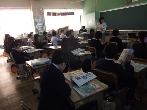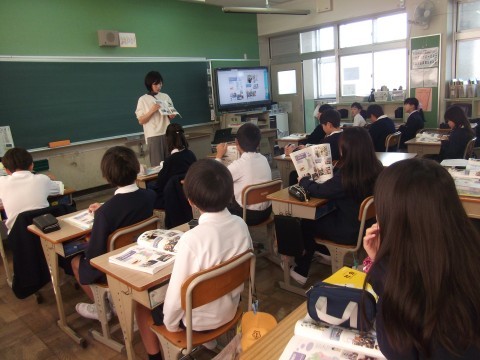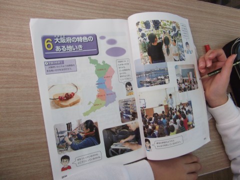 大阪府の特色のある地域として,伝統工芸品の包丁やぶどうなどについて話を聞いていました。