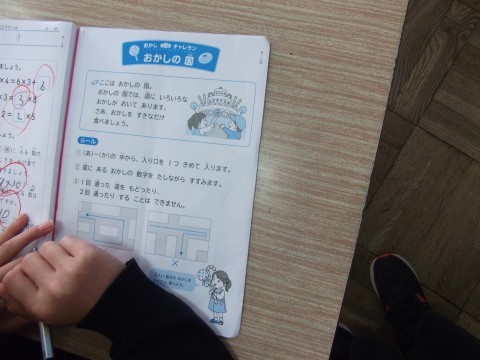 2学期の計算ドリルの最後のページに取り組んでいました。