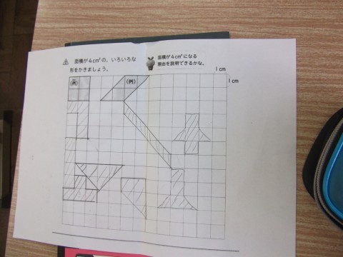 面積が4平方センチメートルになる図形を考えていました。