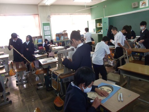 終わった人から,教室をきれいにしています。
