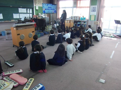 音楽の授業で「100%勇気」を元気よく歌っていました。