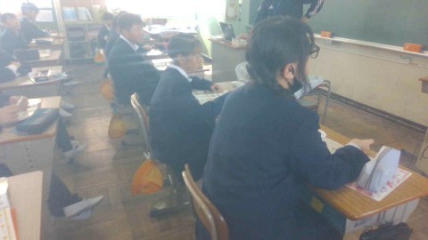 外国語の学習の様子です。英語での動画を見て,その話の内容について考えていました。