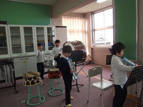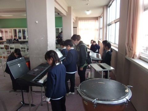それぞれの楽器に分かれて,合奏の練習をしていました。