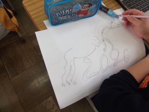 馬の絵を描いていました。