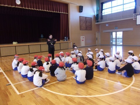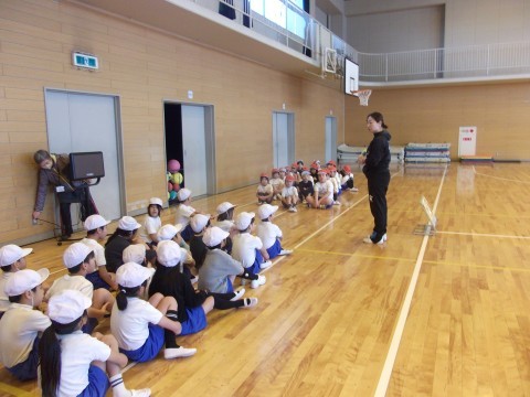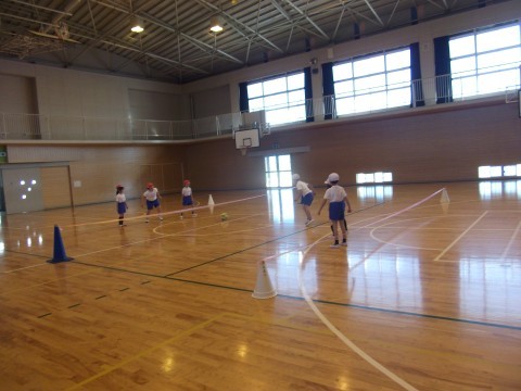 1組,2組対抗で,ボールをはじくゲームをしていました。