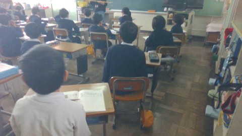 算数の学習の様子です。教室にあるもので,1mの長さに近いものを探していました。