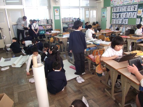 平尾小学校の校区の良いところを,大きな紙にまとめていました。