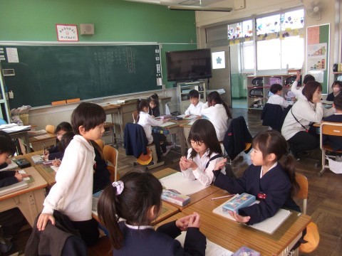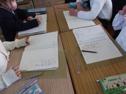 グループで分かれて,果物やパンや魚などの名前集めに取り組んでいました。
