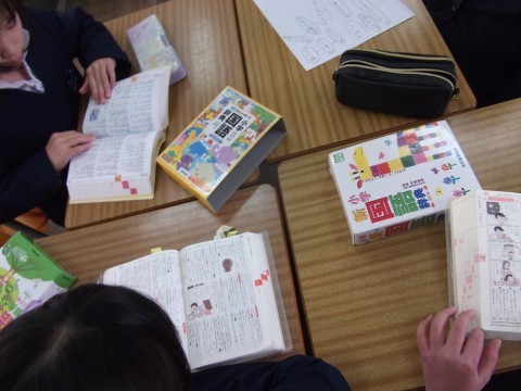 国語辞典を使って,言葉をどのように表すかを調べていました。