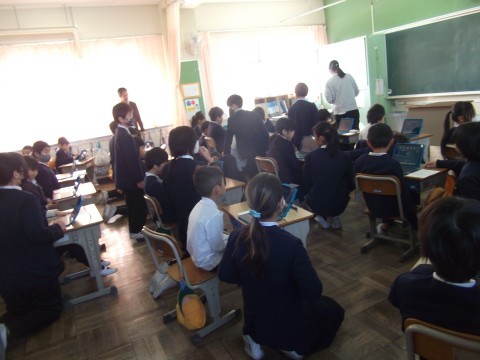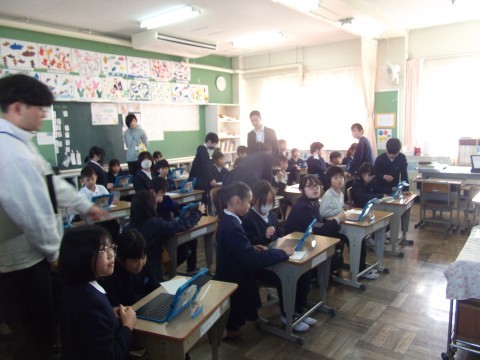2年生の新しいタブレットの最初の設定などを5年生がお手伝いしてくれていました。