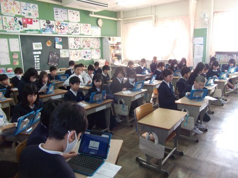 5年生が2年生の新タブレットの設定のお手伝いをしてくれていました。