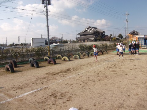 走り幅跳びに挑戦していました。